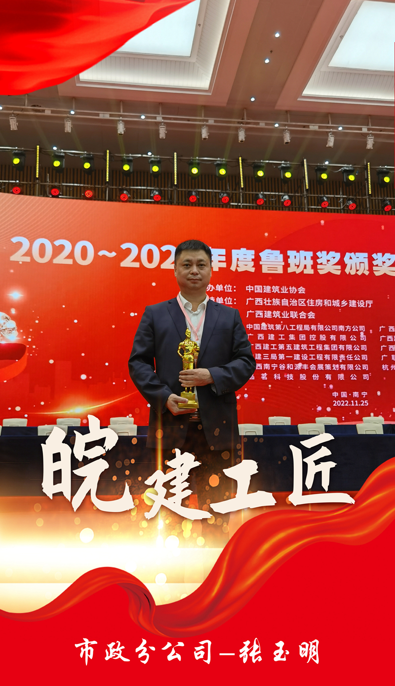 張玉明,市政分公司黨總支副書記、總經(jīng)理。先后參加過阜周路12標、茨淮新河大橋、阜陽北路高架、涇縣城鎮(zhèn)化建設等項目的建設工作。多年來,他重實踐講擔當,獲省級工法7項、部級工法4項、發(fā)明專利1項、實用新型專利13項、省級QC成果2項、國家級QC成果6項、省級BIM成果4項、國家級BIM成果4項、科技進步獎13項。