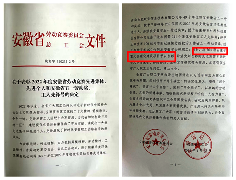 近日,安徽省總工會2022年度重大合理化建議評選活動結果公布,公司43項成果獲省重大合理化建議,為公司五年來獲此榮譽之和,是安徽建工集團2022年度獲省級合理化建議最多的二級單位。