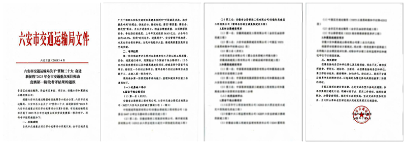公司承建項目在六安市交通重點項目勞動競賽考評中取得佳績