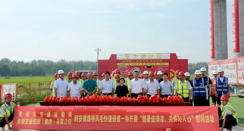 淮南市交通運(yùn)輸局副局長潘理想到鳳毛快速通道01標(biāo)開展“送清涼”慰問