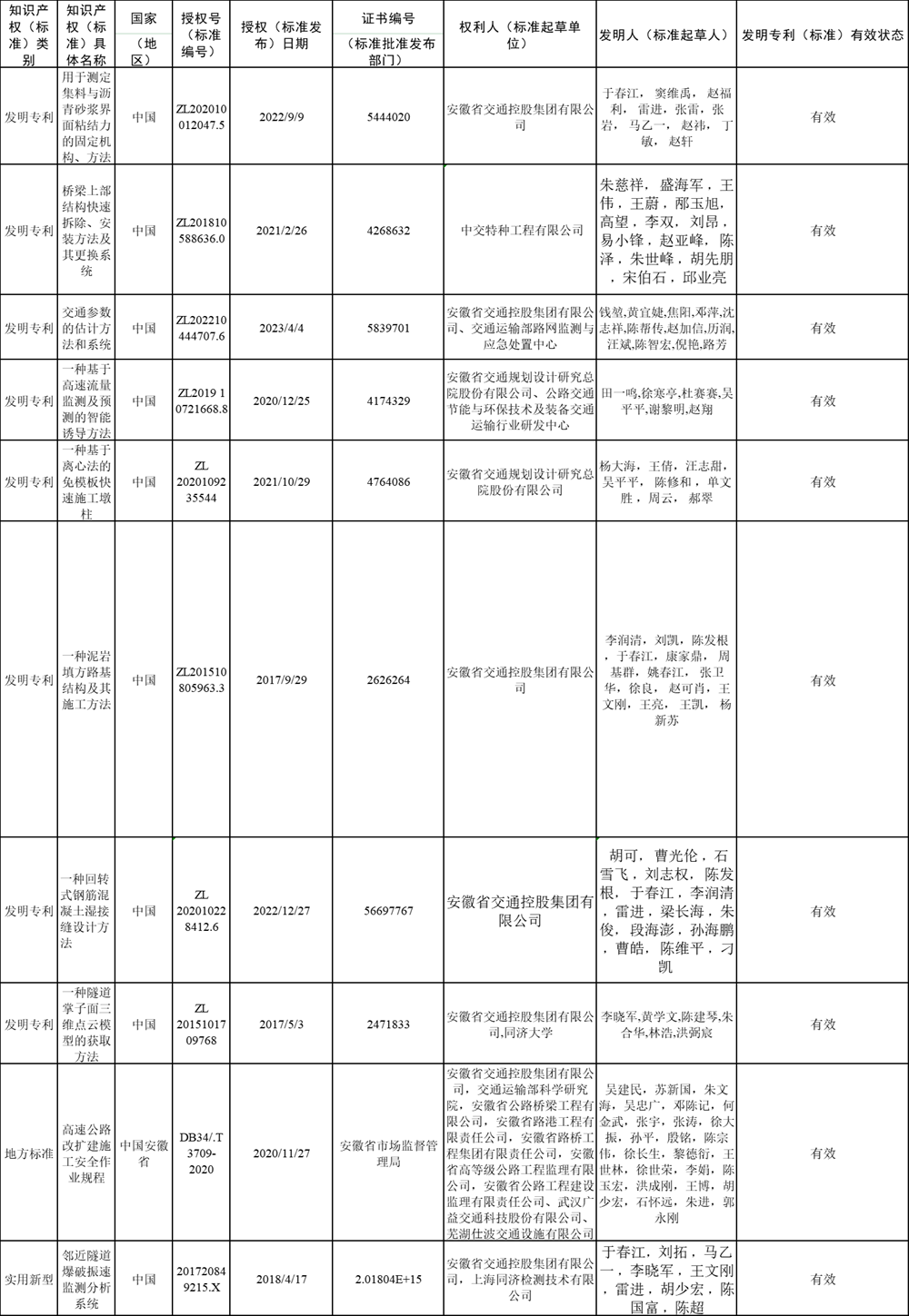 安徽省交通控股集團有限公司、安徽省交通規(guī)劃設(shè)計研究總院股份有限公司、安徽交控工程集團有限公司、安徽省公路橋梁工程有限公司、交通運輸部科學研究院、安徽巢湖路橋建設(shè)集團有限公司、中交特種工程有限公司