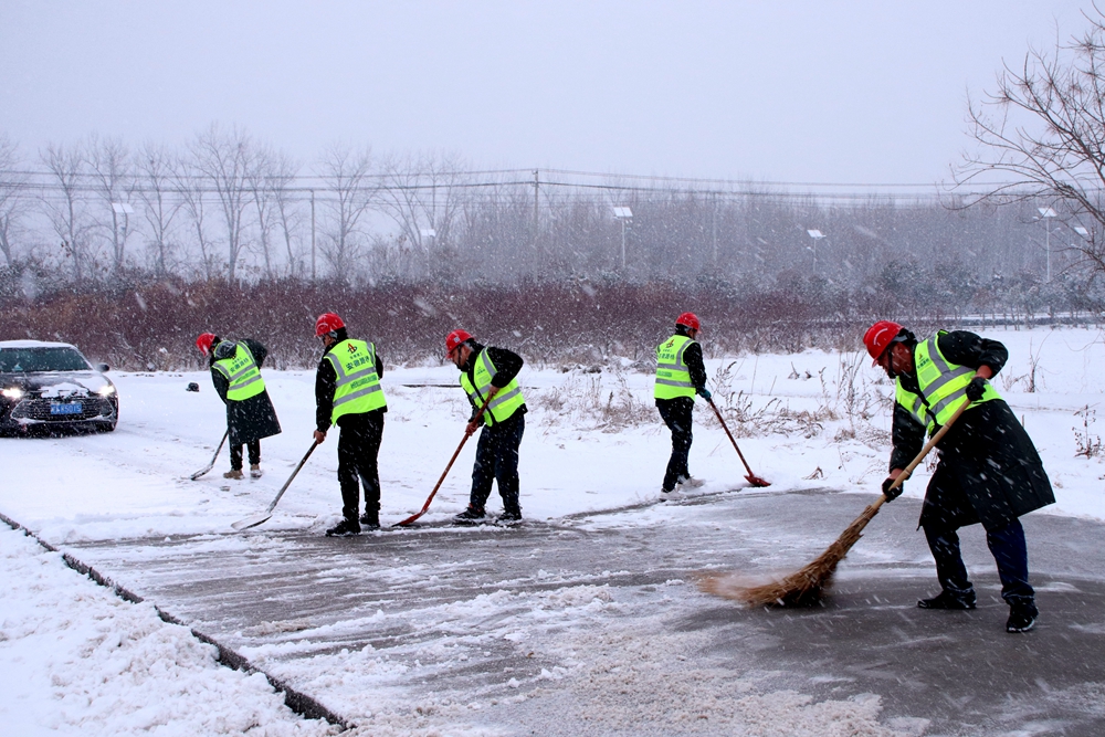 道路分公司徐淮阜高速(淮北段)項(xiàng)目以雪為令,迅速組織動(dòng)員項(xiàng)目青年突擊隊(duì)奮勇投身鏟冰除雪第一線。