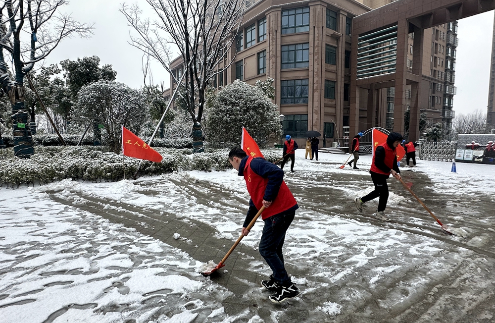 軌道分公司合肥新橋機(jī)場(chǎng)S1線3標(biāo)項(xiàng)目部組織盾構(gòu)志愿服務(wù)隊(duì)在十張新村、崗集中心衛(wèi)生院周邊鏟雪除冰,為居民安全順暢出行增添保障。
