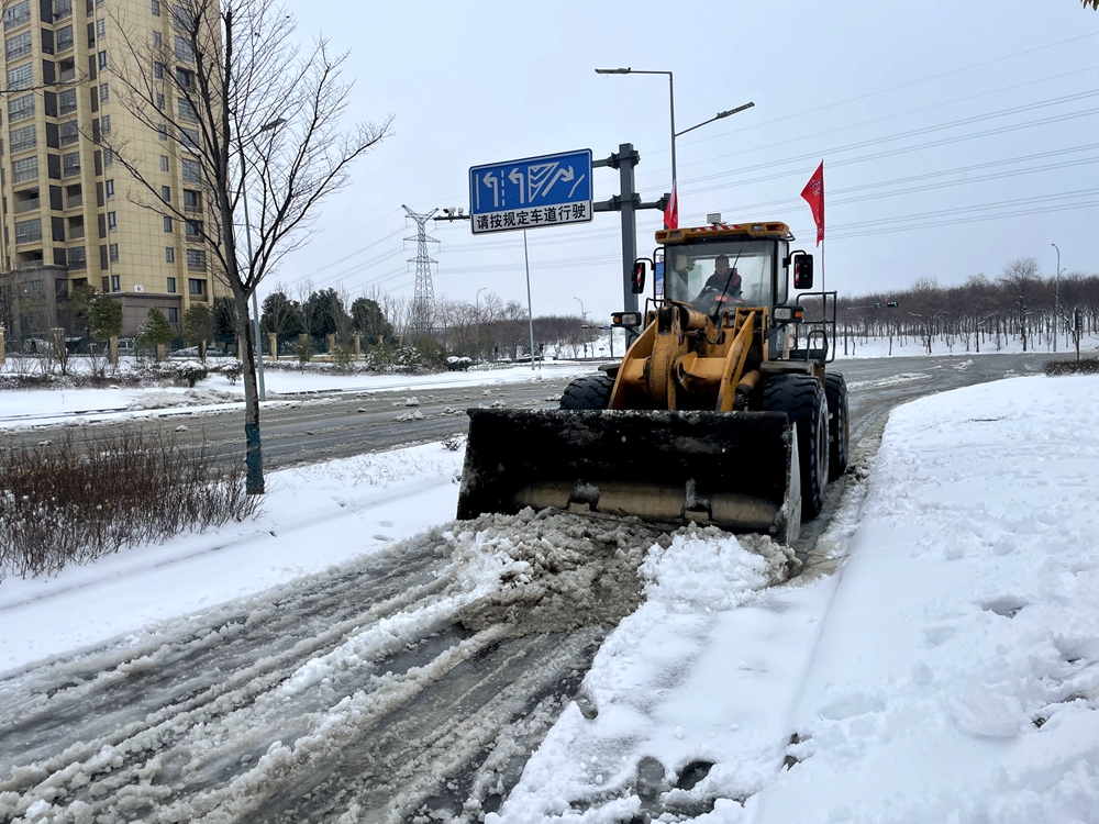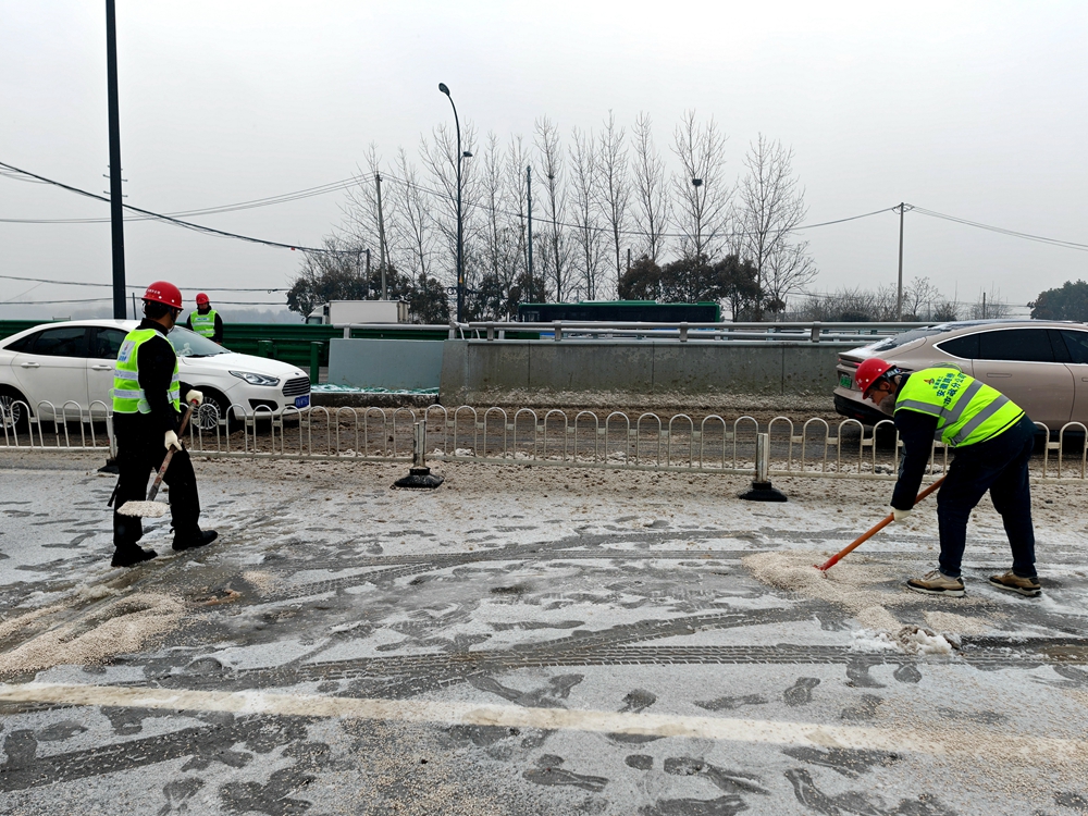 市政分公司G312合六路二標(biāo)項(xiàng)目組織項(xiàng)目職工在交通要道撒放融雪劑并開(kāi)展除雪志愿服務(wù)。