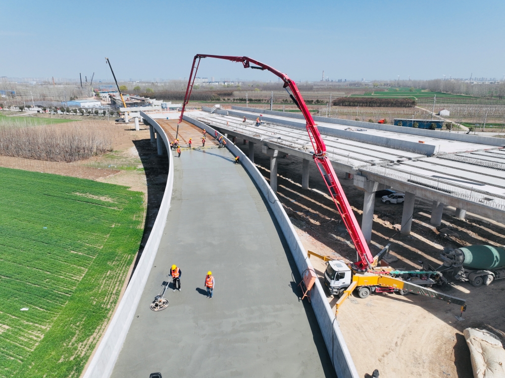 “施工過(guò)程中,我們嚴(yán)把原材料質(zhì)量、橋面清理、鋼筋網(wǎng)片鋪設(shè)、混凝土澆筑等各道工序,攤鋪后對(duì)混凝土表面進(jìn)行二次收面,及時(shí)覆蓋土工布并進(jìn)行灑水養(yǎng)生,使橋面達(dá)到內(nèi)實(shí)外美效果?!敝苌垸i說(shuō),全線橋面鋪裝總計(jì)88聯(lián),橋面鋪裝首件工程的順利澆筑,為后續(xù)橋面施工提供了技術(shù)支撐,截至3月底已累計(jì)完成10跨。