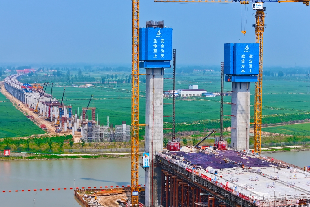 【路橋“競”行時】S16合周高速4標(biāo)東淝河大橋項目主橋邊跨現(xiàn)澆箱梁澆筑完成