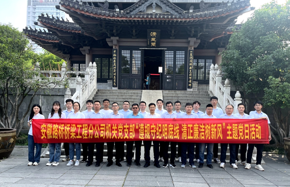 橋梁分公司機關黨支部到包公園開展“遵規(guī)守紀明底線,清正廉潔樹新風”主題黨日活動。黨員群眾在清風閣、包公祠等主題展區(qū)深刻感悟包公“孝忠、民本、剛正、清廉”的勤廉思想,并學習了焦裕祿等時代楷模的廉潔事跡。