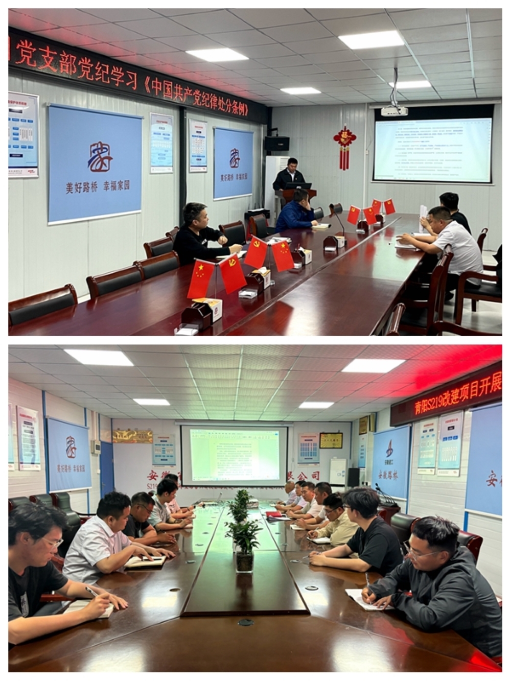 S358改建W10標項目黨支部、青陽S219改建項目黨支部利用“三會一課”、主題黨日活動等載體,逐條逐句學習《中國共產(chǎn)黨紀律處分條例》,持續(xù)增強學習的針對性、實效性。