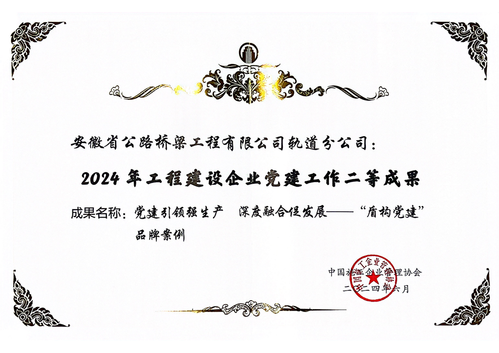 近日,中國施工企業(yè)管理協(xié)會公布2024年工程建設企業(yè)黨建工作優(yōu)秀成果名單,公司“‘1235’黨建工作法”、“‘盾構黨建’品牌案例”獲評二等成果。