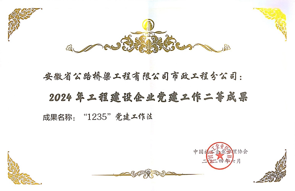 公司兩項黨建品牌獲評中施企協(xié)2024年工程建設企業(yè)黨建工作二等成果