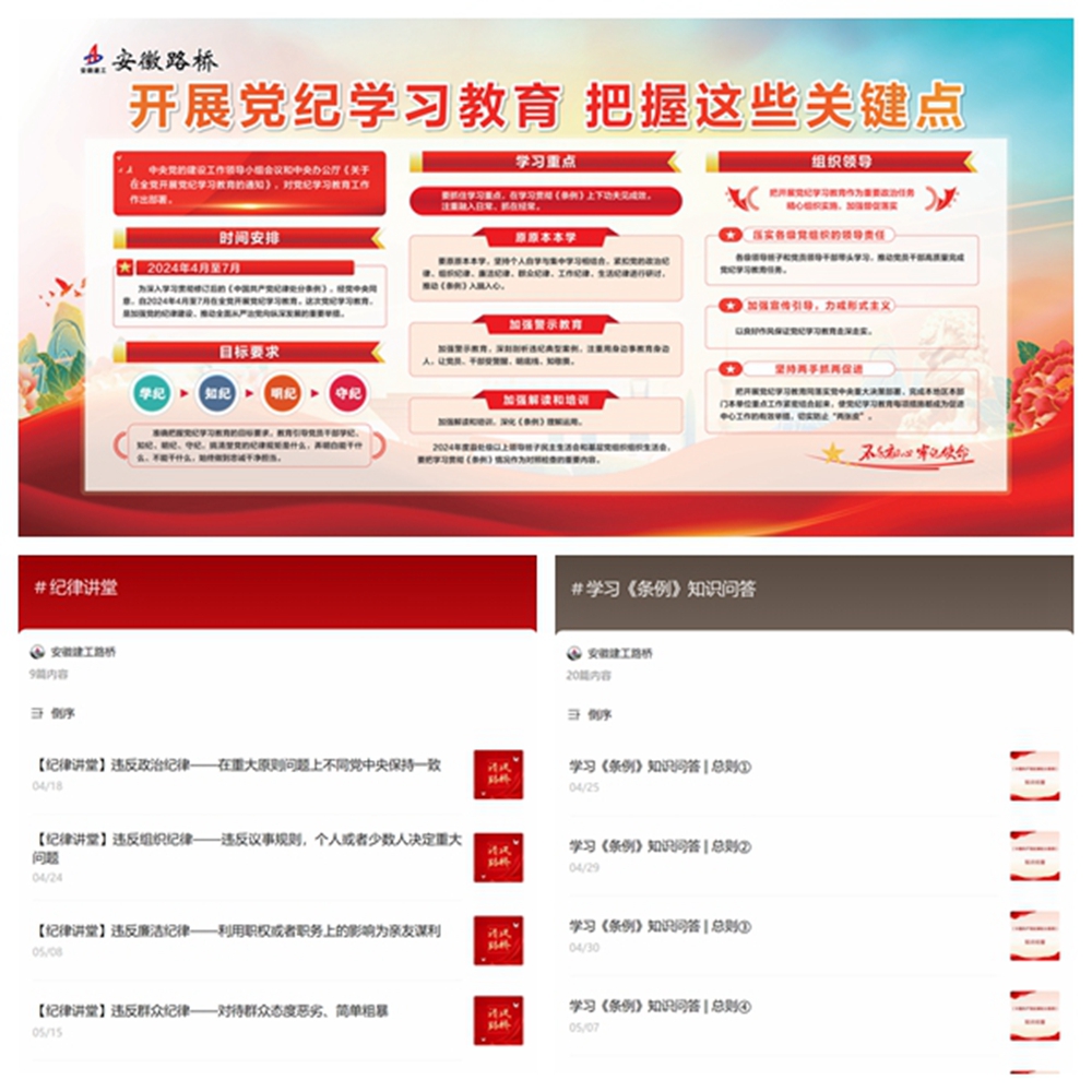 黨紀學(xué)習(xí)教育開展以來,公司黨委高度重視宣傳引導(dǎo)、氛圍提升。為擴大宣傳引導(dǎo)的接觸面,公司黨委統(tǒng)籌制定發(fā)布了黨紀學(xué)習(xí)教育展板。同時,立足“清風(fēng)路橋”建設(shè),加大宣傳力度,綜合運用官網(wǎng)、官微,設(shè)立“紀律講堂”“學(xué)習(xí)《條例》知識問答”等專欄,累計推出黨紀學(xué)習(xí)教育相關(guān)報道和學(xué)習(xí)材料80余篇次,做到“每日推送”。組織全體黨員職工參加公司內(nèi)網(wǎng)《條例》線上知識測試,以考助學(xué)、以訓(xùn)促學(xué),鞏固學(xué)習(xí)成果,檢驗學(xué)習(xí)成效,在全公司營造學(xué)紀、知紀、明紀、守紀的良好氛圍。各級黨組織通過“三會一課”等方式開展專題學(xué)習(xí)230余次,受教育黨員、職工累計超2500人次。