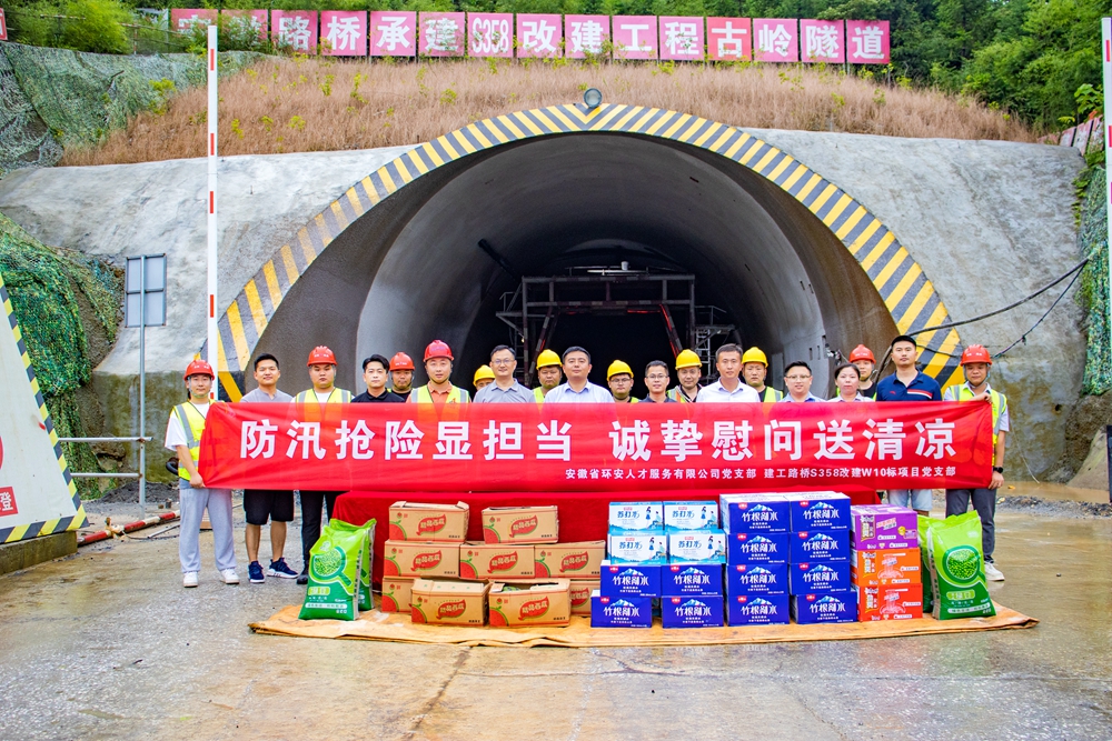 7月14日下午,共青團(tuán)池州市委副書記、市青聯(lián)主席蔣業(yè)健帶隊(duì)到公司承建的S358改建W10標(biāo)古嶺隧道施工現(xiàn)場(chǎng),開(kāi)展“防汛搶險(xiǎn)顯擔(dān)當(dāng) 誠(chéng)摯慰問(wèn)送清涼”活動(dòng),看望慰問(wèn)奮戰(zhàn)在施工一線的建設(shè)者們,叮囑要科學(xué)安排施工和休息時(shí)間,并送來(lái)防暑降溫物資。