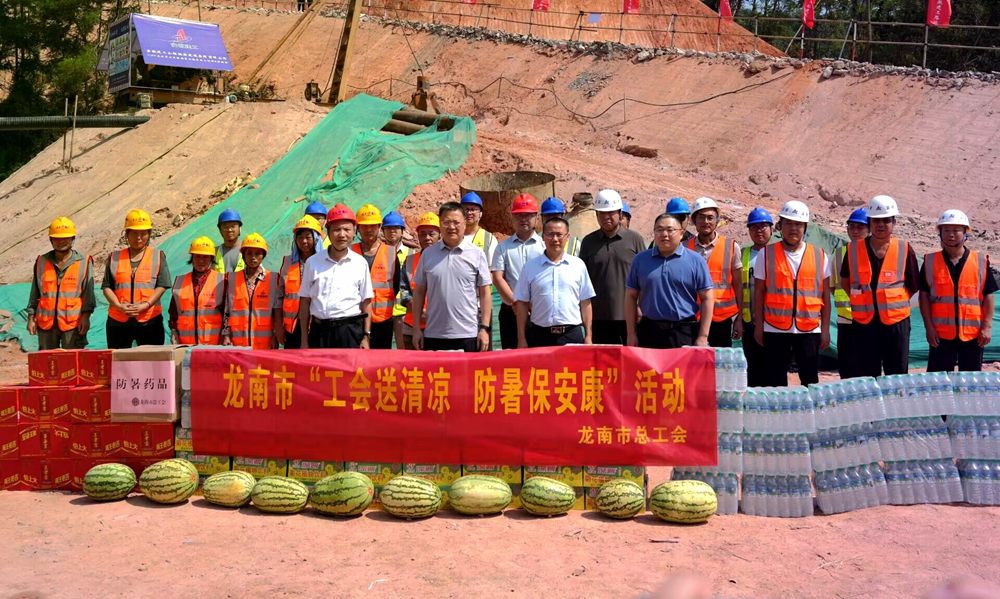 7月24日上午,龍南市委副書記、市長彭江閩到G105龍南改建項(xiàng)目實(shí)地調(diào)研項(xiàng)目建設(shè)進(jìn)展情況,看望慰問一線建設(shè)者,并送來防暑降溫物資。