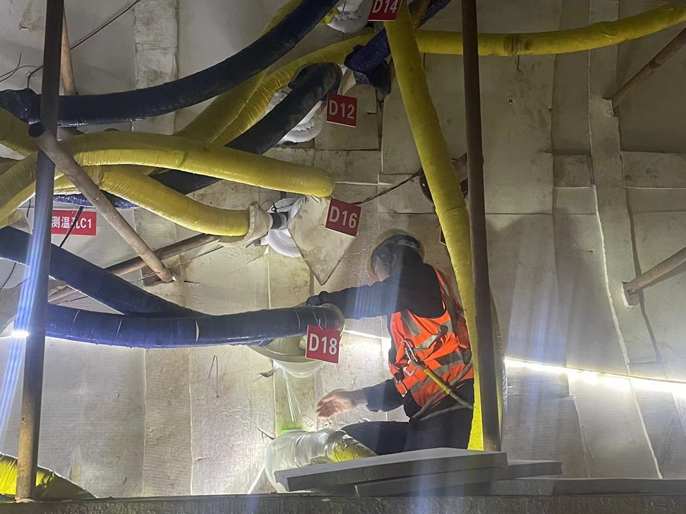 聯(lián)絡(luò)通道為什么要采用“凍結(jié)法”施工?據(jù)悉,在固鎮(zhèn)路站至盾構(gòu)井區(qū)間線路范圍內(nèi),1號(hào)聯(lián)絡(luò)通道跨越南淝河,洞身范圍內(nèi)為軟弱土層,采用普通施工方法則有坍塌風(fēng)險(xiǎn)。采用“凍結(jié)法”施工,在施工過(guò)程中及施工范圍,全程、全面運(yùn)用凍結(jié)加固方法,使施工周邊土體與地下水凍結(jié)成具有承載封水效果的板結(jié)帷幕,隔絕地下水,解決跨河富水地段隧洞開挖難以支護(hù)的技術(shù)難題,消除安全隱患。另外,“凍結(jié)法”施工相對(duì)環(huán)保,對(duì)地面環(huán)境影響較小。