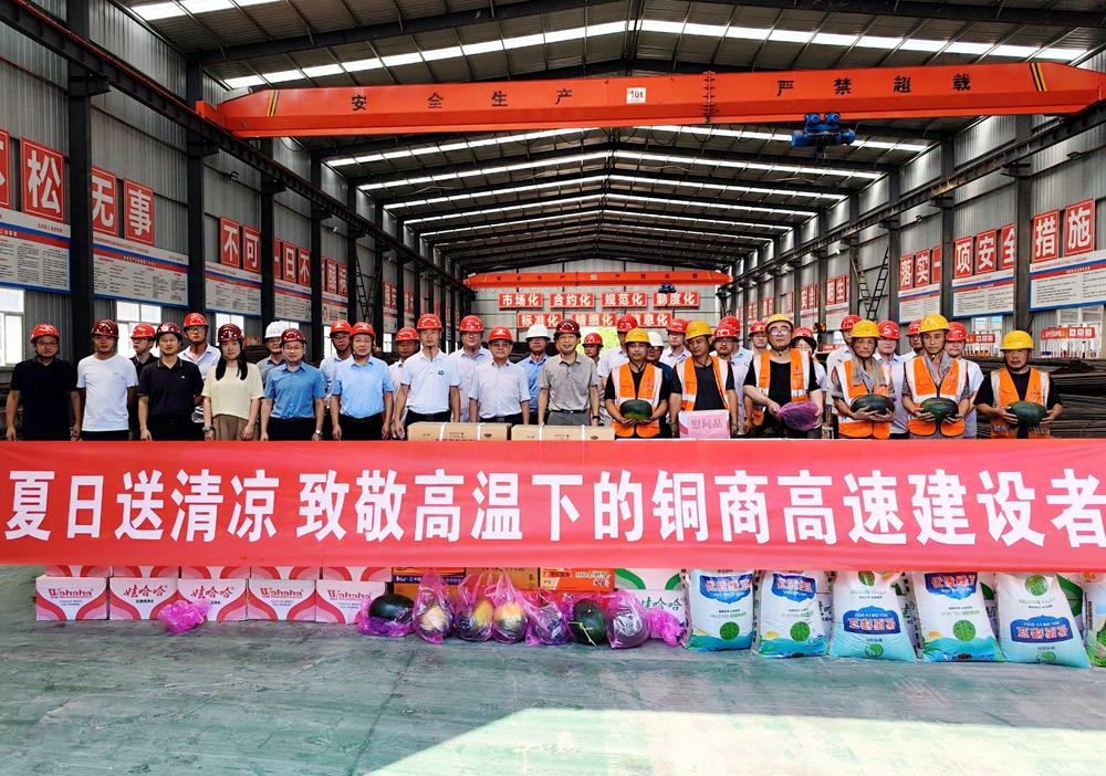 8月8日上午,省鐵投公司黨委副書記、總經(jīng)理何勝利帶隊到銅商高速主體1標(biāo)開展“夏日送清涼”慰問,為高溫下堅守一線的建設(shè)者們送去防暑降溫物資,叮囑項目要做實做細(xì)防暑降溫工作,合理調(diào)整作業(yè)時間,切實保障廣大建設(shè)者的生命健康安全。