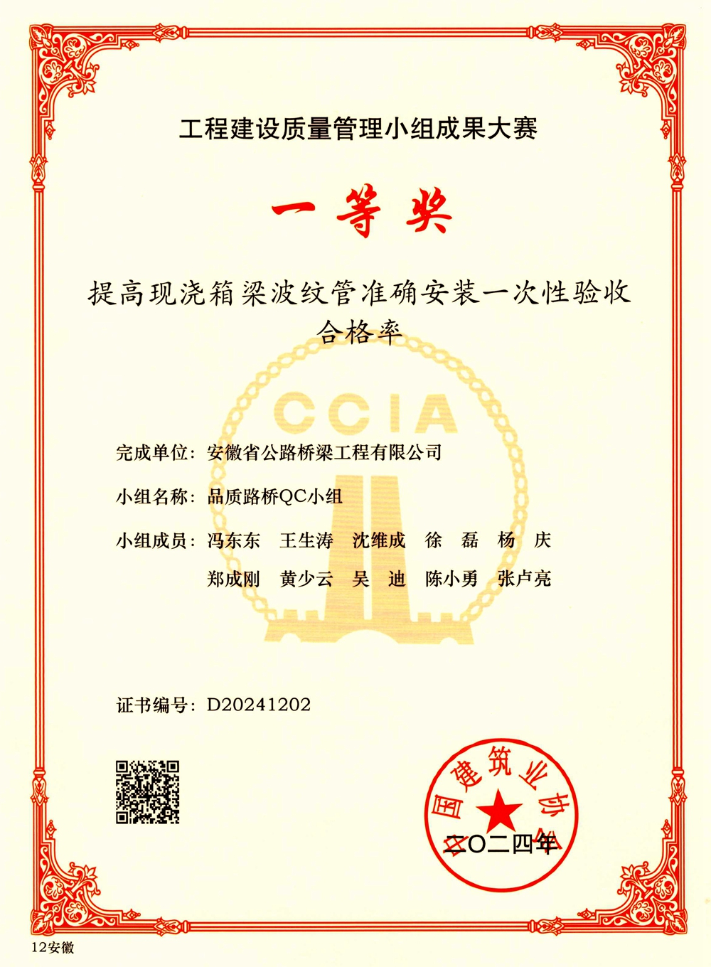 近日,中國建筑業(yè)協(xié)會公布了2024年工程建設質量管理小組成果大賽名單,公司申報3項QC成果榜上有名。