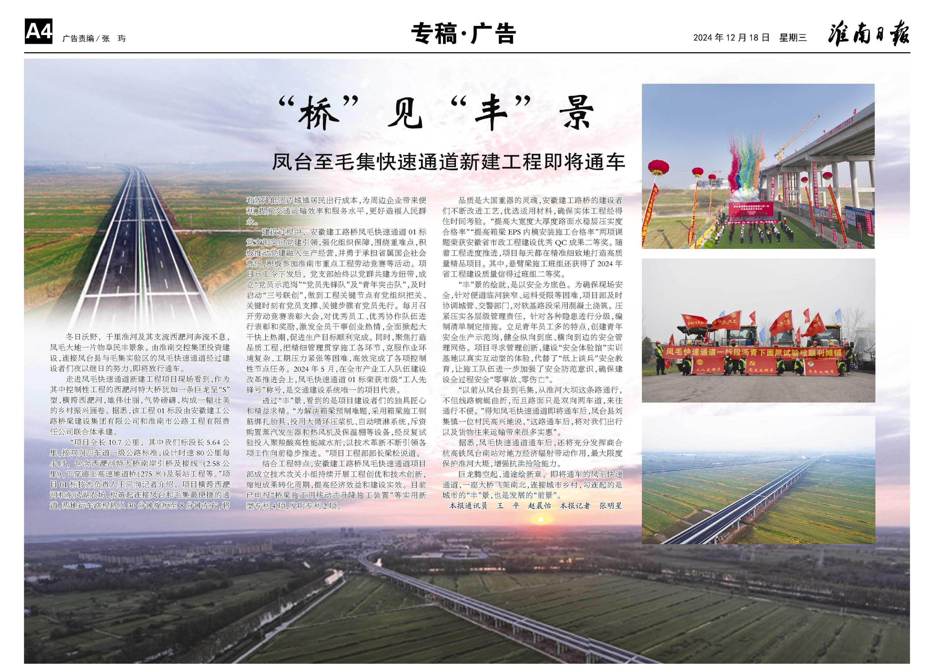 【名媒聚焦】淮南日?qǐng)?bào):“橋”見(jiàn)“豐”景——鳳臺(tái)至毛集快速通道新建工程即將通車(chē)