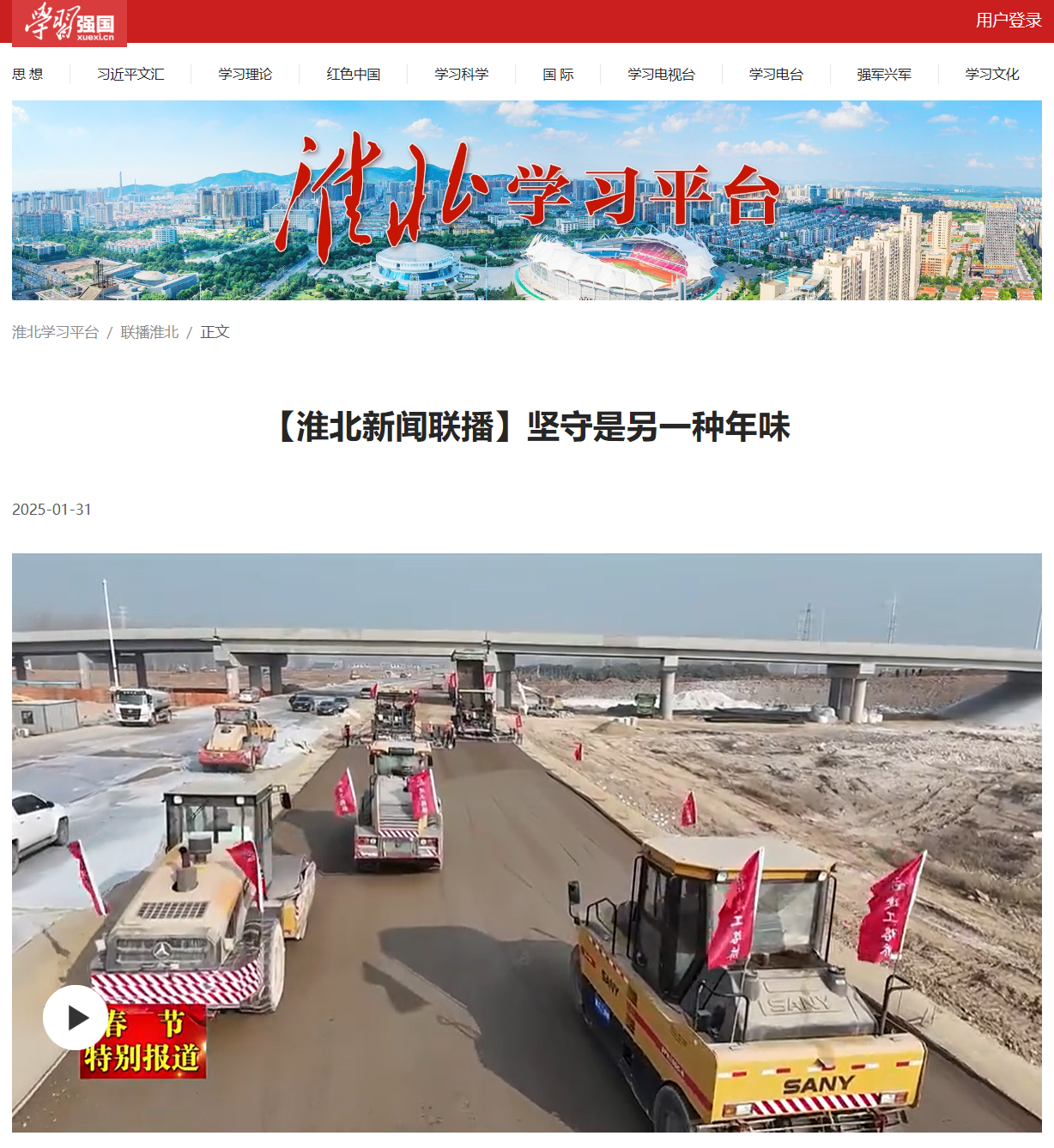 【名媒聚焦】學習強國、淮北新聞聯(lián)播關注報道徐淮阜高速淮北段項目春節(jié)期間堅守項目建設