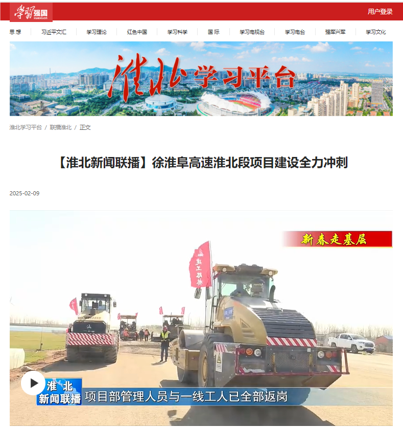 【名媒聚焦】學習強國、淮北新聞聯(lián)播、淮北日報:徐淮阜高速淮北段項目全力以“復”加油干