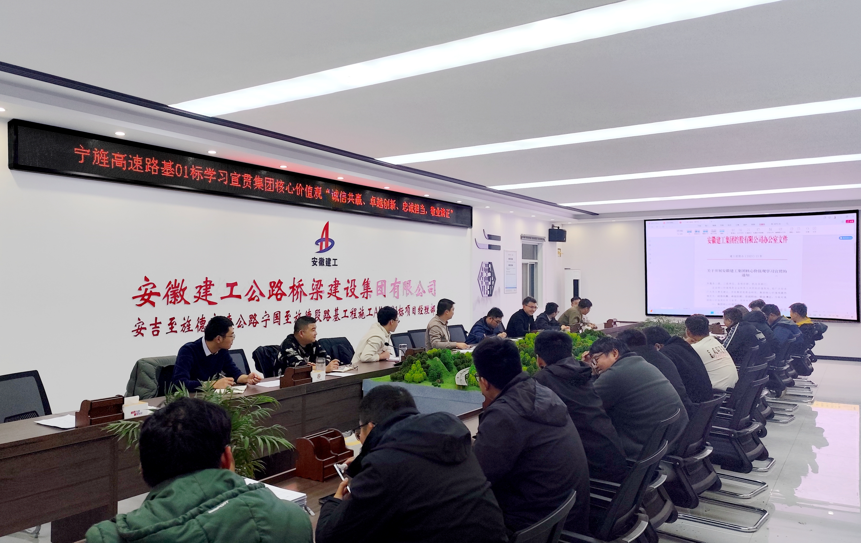 淮桐高速淮南段路基4標(biāo)開(kāi)展集團(tuán)核心價(jià)值觀(guān)專(zhuān)題學(xué)習(xí),引導(dǎo)項(xiàng)目職工將集團(tuán)核心價(jià)值觀(guān)落實(shí)到崗位職責(zé)中。