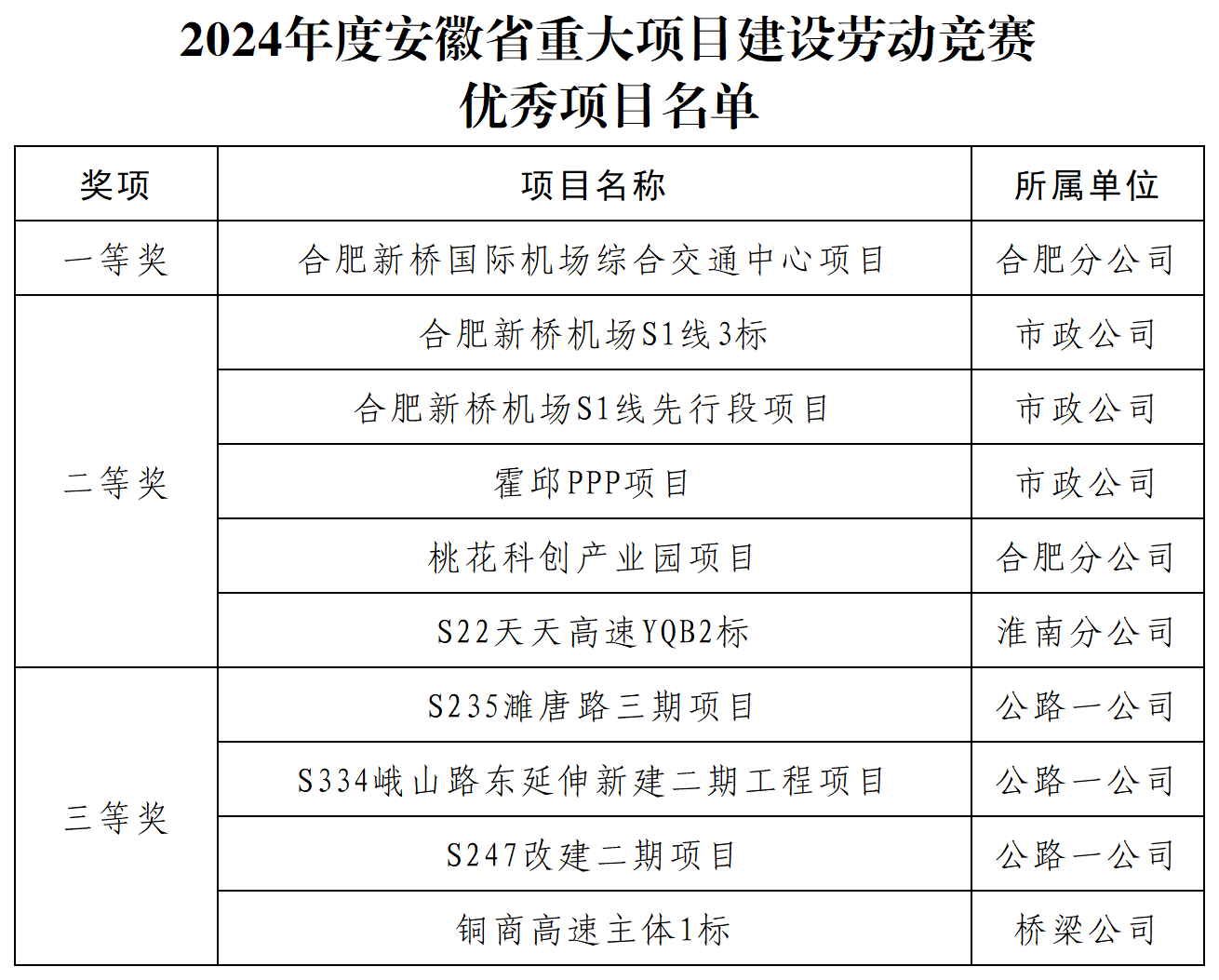 近日,安徽省住建廳與省總工會對2024年度重大項(xiàng)目建設(shè)勞動競賽參賽項(xiàng)目進(jìn)行了通報(bào)表揚(yáng),公司承建的合肥新橋國際機(jī)場綜合交通中心項(xiàng)目、S1線3標(biāo)等10個項(xiàng)目榮獲優(yōu)秀項(xiàng)目稱號。
