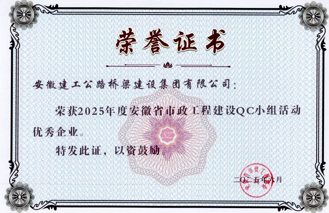卓越創(chuàng)新 | 公司榮獲“2025年度安徽省市政工程建設(shè)QC小組活動(dòng)優(yōu)秀企業(yè)”稱號(hào)
