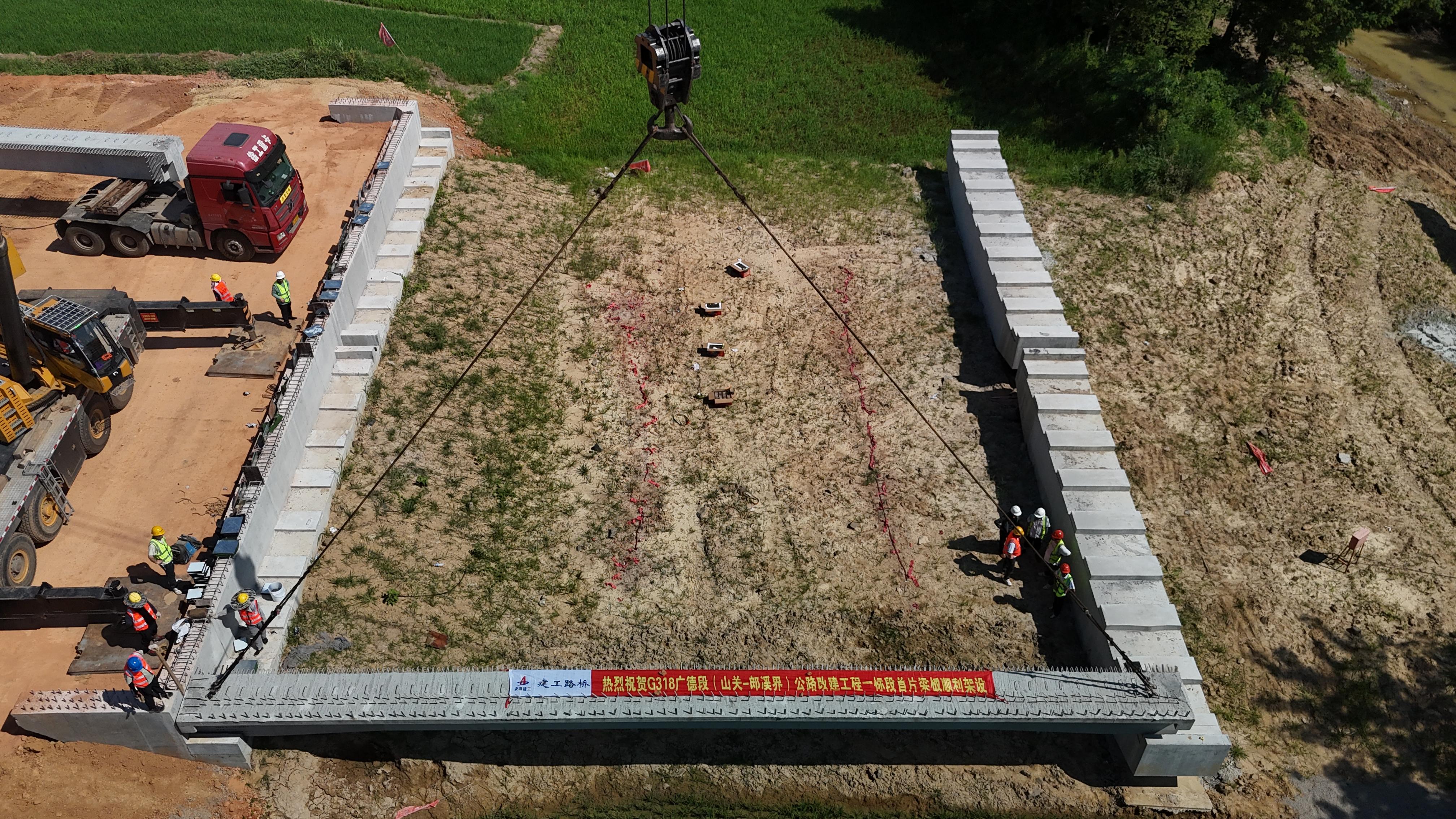【路橋“競(jìng)”行時(shí)】G318廣德段01標(biāo)首片T梁架設(shè)成功
