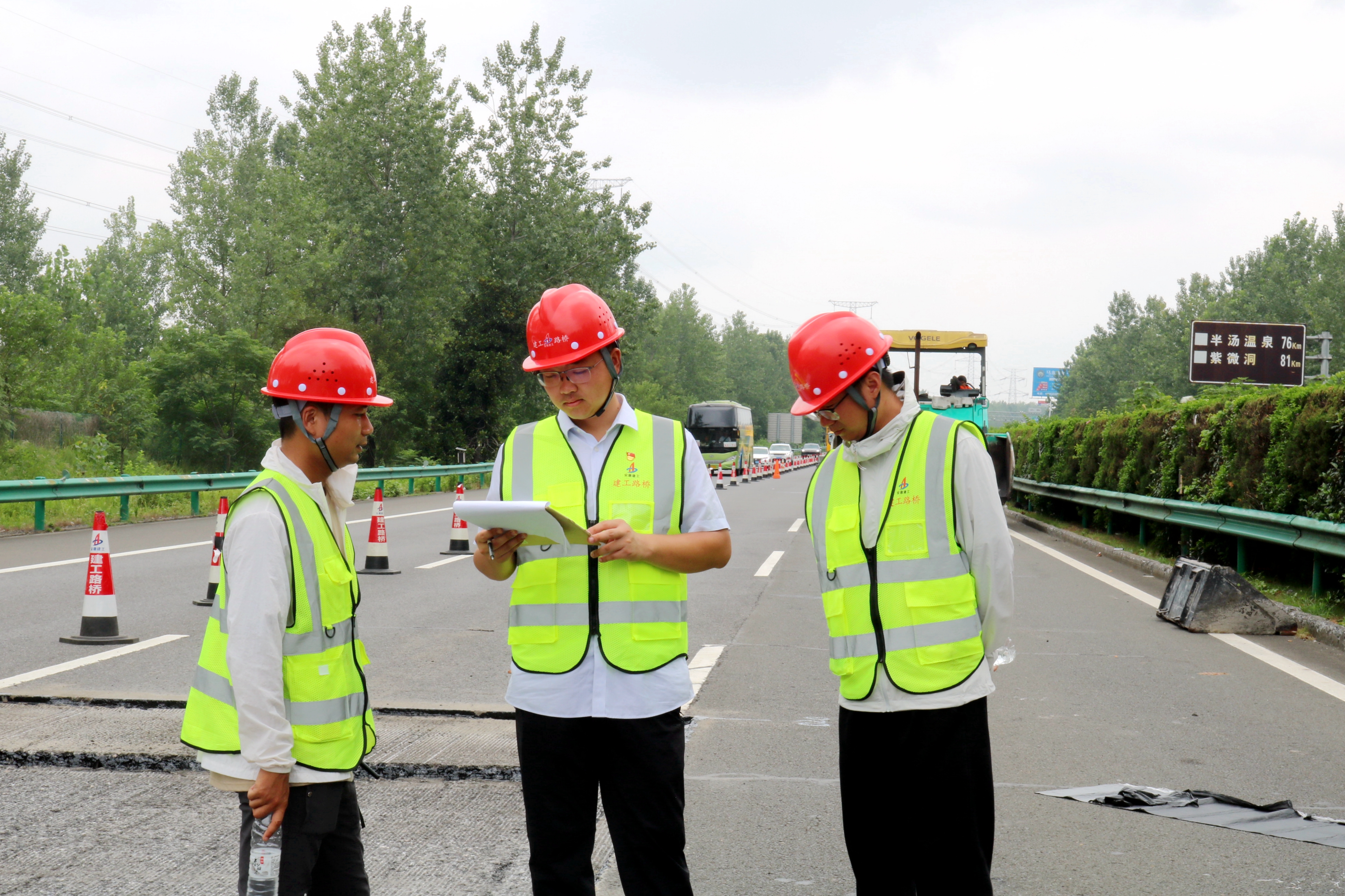 施工中,黨員“亮身份、作承諾、當先鋒”,帶頭值守夜間施工、攻克技術(shù)堵點。為破解交通導改難題,團隊發(fā)動“頭腦風暴”,多次實地踏勘周邊路網(wǎng),結(jié)合車流量大數(shù)據(jù)分析,深挖通行潛力,最終制定出最優(yōu)封閉施工方案。引入智能化監(jiān)測設備,實時監(jiān)控路面溫度、壓實度等指標,讓每一道工序都經(jīng)得起“數(shù)據(jù)檢驗”。
