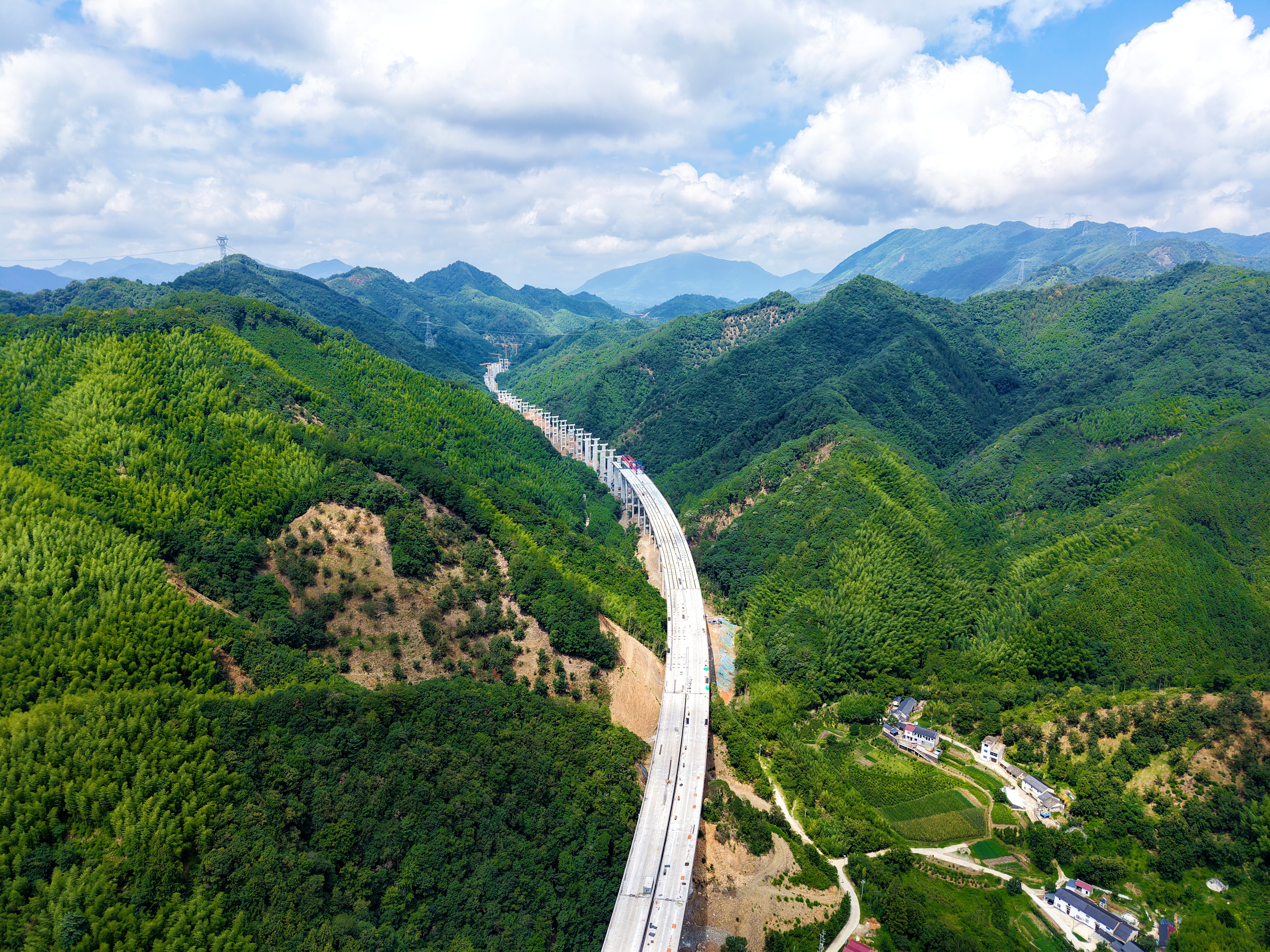 二季度以來,項目克服高空作業(yè)、樞紐導改、雨季汛期等挑戰(zhàn),統(tǒng)籌抓好進度、質(zhì)量、安全等要素管控,提前完成全線橋梁下部結(jié)構(gòu)施工、滿堂支架現(xiàn)澆箱梁施工等節(jié)點,控制性工程新嶺腳隧道實現(xiàn)全幅貫通。
