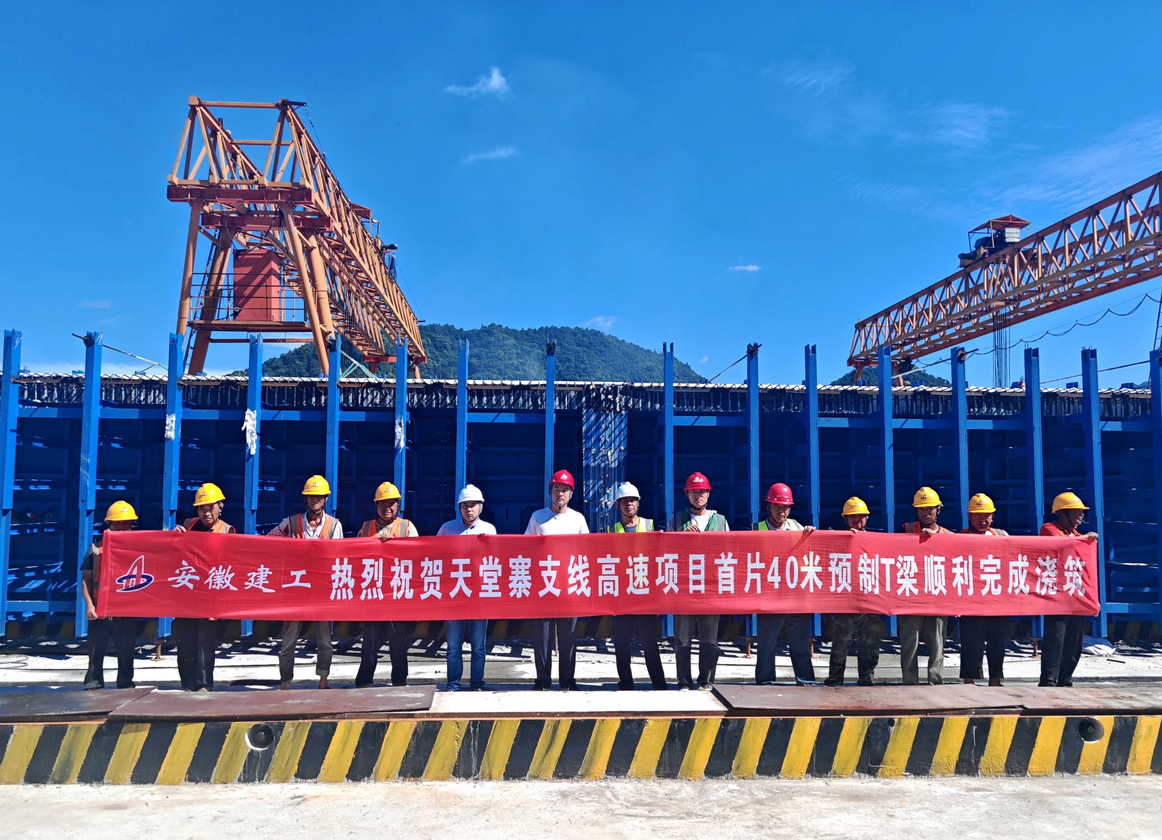 【路橋“競”行時】天堂寨支線高速項(xiàng)目首片預(yù)制T梁成功澆筑