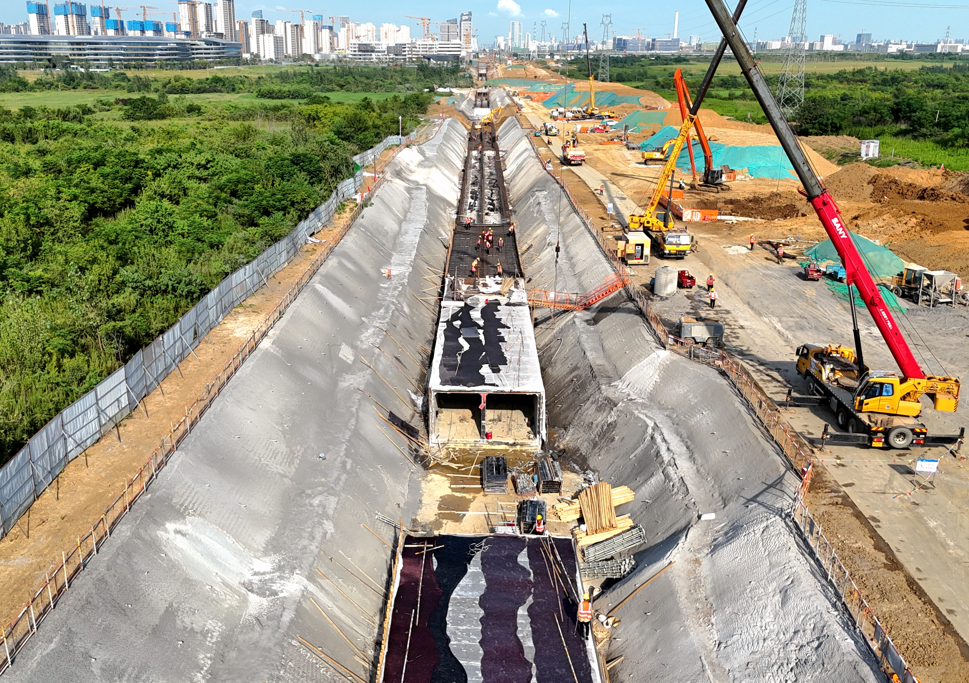 自項(xiàng)目開(kāi)工建設(shè)以來(lái),全體參建人員凝心聚力、攻堅(jiān)克難,工程推進(jìn)成效顯著。截至目前,項(xiàng)目各分項(xiàng)工程均按計(jì)劃穩(wěn)步推進(jìn),路基工程采用分段平行施工模式高效完成清表3170米、清淤6000方;橋梁工程樁基全線(xiàn)完工,橋梁下部結(jié)構(gòu)施工按序推進(jìn),預(yù)制梁板同步進(jìn)入標(biāo)準(zhǔn)化生產(chǎn)階段。管廊工程作為項(xiàng)目建設(shè)的“重頭戲”,已完成全線(xiàn)3170米基坑開(kāi)挖,同步推進(jìn)底板、頂板結(jié)構(gòu)施工,其中底板結(jié)構(gòu)澆筑完成1200米,頂板結(jié)構(gòu)完成440米。