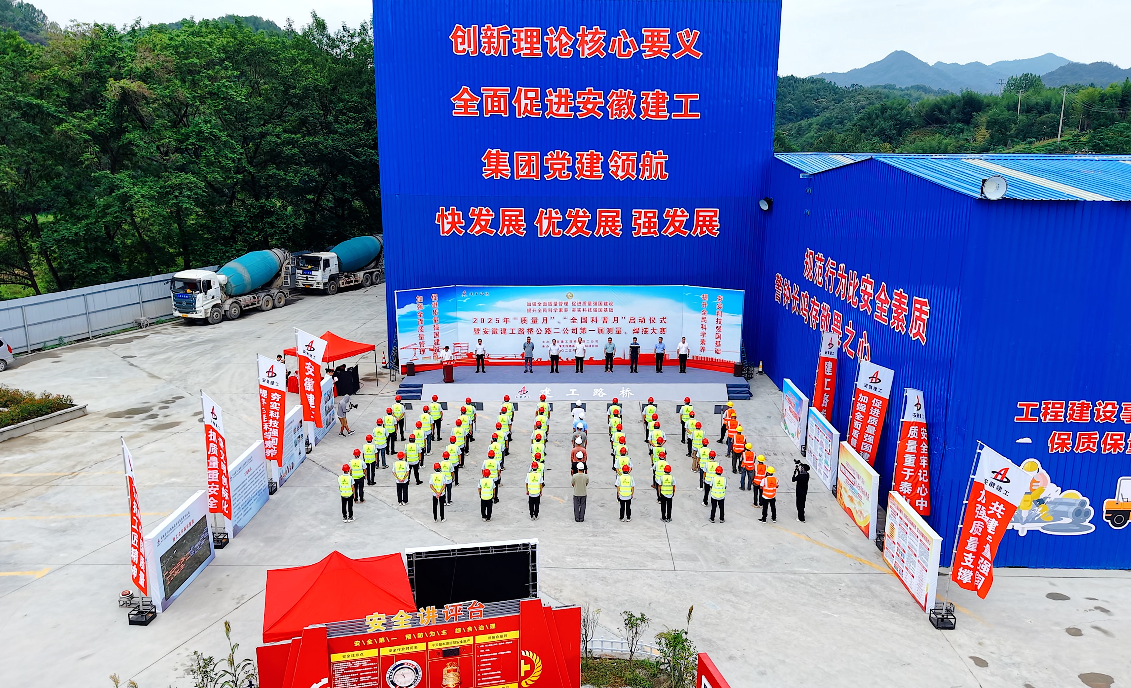 9月14日,公路二公司“質(zhì)量月”“全國科普月”啟動儀式暨首屆測量與焊接競賽在天堂寨支線高速項(xiàng)目順利舉辦,公司黨委委員、副總經(jīng)理程濤出席活動并講話,來自所屬各項(xiàng)目共18名選手組成的6支隊(duì)伍參加。