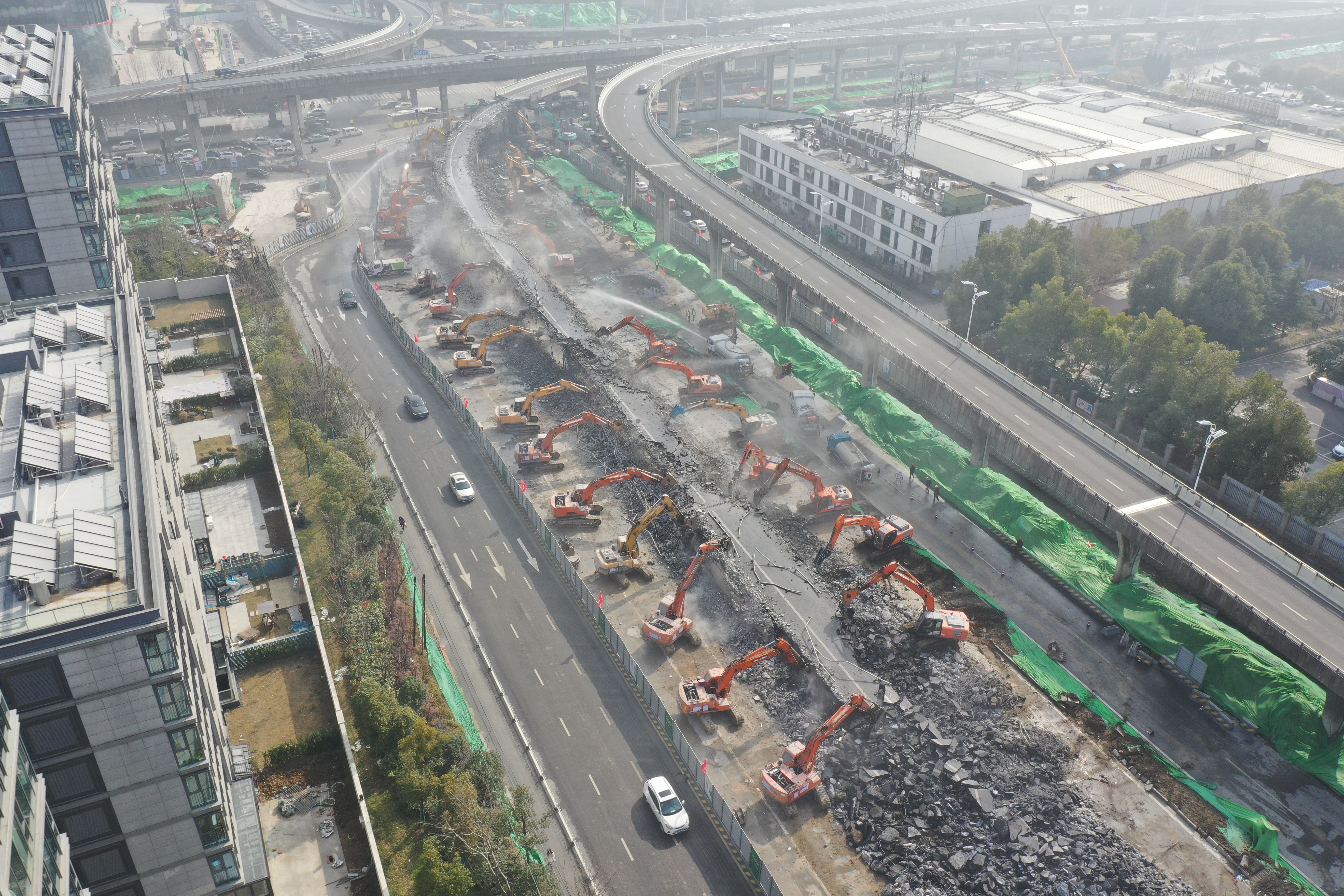 2021年2月3日,安徽建工路橋僅用15小時完成原計劃兩天的合肥金寨路高架南向西至南二環(huán)左轉(zhuǎn)匝道拆除任務。