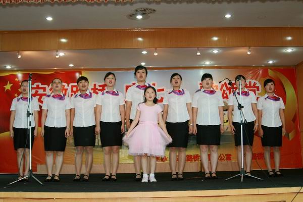 經(jīng)過近2個小時的緊張激烈的角逐,環(huán)通公司代表隊《愛我中華》以其出新的表演風(fēng)格和富有感染力的歌聲獲得了本次比賽合唱一等獎,橋梁公司代表隊《歌唱祖國》獲得合唱二等獎;公司機關(guān)楊宗霖的飽含深情地演唱《母親》獲得獨唱一等獎;胡運春演唱的《咱們的老百姓》獲得獨唱二等獎;張梅演唱的《小小的我》獲得獨唱三等獎。