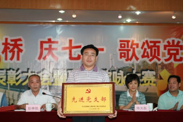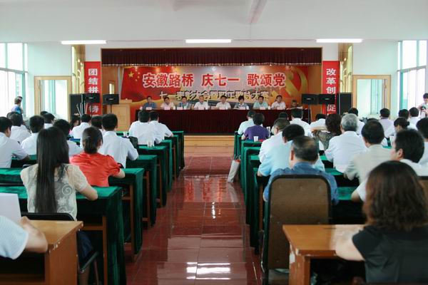 會議在雄壯的《國際歌》聲中開始。黨委書記陳光磊作了《牢記宗旨、珍惜榮譽、勇往直前》激情洋溢的講話。她說:今天我們大家在此歡聚一堂,紀(jì)念我們偉大的中國共產(chǎn)黨成立88周年,并對公司2008年度的先進基層黨組織和優(yōu)秀黨員、黨務(wù)工作者進行集中表彰。這是一個喜慶的日子,也是一個值得紀(jì)念的日子。在此,我謹代表公司黨委對所受表彰的先進單位和個人表示熱烈的祝賀,向公司所有的黨員表示崇高的敬意。接著她深情回顧了黨的光輝歷程,同時要求我們也應(yīng)該更加自覺地牢記黨的宗旨,在自己的工作崗位上勤奮、踏實、敬業(yè)的工作,為黨徽增光,為黨旗添彩。隨后,陳書記對2008年的黨委工作進行了回顧總結(jié),并對2009年下半年就如何進一步加強黨的建設(shè),深入學(xué)習(xí)實踐落實科學(xué)發(fā)展觀,更好地發(fā)揮黨組織的政治核心作用、戰(zhàn)斗堡壘作用和黨員的先鋒模范作用,提了幾點要求:一、繼續(xù)認真開展學(xué)習(xí)實踐科學(xué)發(fā)展觀活動,充分認清制約公司科學(xué)發(fā)展的問題,并有效整改,使公司走上科學(xué)發(fā)展的軌道;二、轉(zhuǎn)變觀念,找準(zhǔn)黨建工作的“切入點”,積極主動的融入中心工作,充分發(fā)揮基層黨組織的戰(zhàn)斗堡壘作用;三、充分發(fā)揮共產(chǎn)黨員先鋒模范作用,增強號召力、凝聚力、戰(zhàn)斗力。最后,陳書記號召全體黨員把全部心思和精力集中到加快公司發(fā)展上,把各方面的力量凝聚到加快公司發(fā)展上,把共產(chǎn)黨人的先進性體現(xiàn)到加快公司發(fā)展上,以更加飽滿的熱情、更加務(wù)實的精神、更加積極的工作狀態(tài)投入到各項工作中去,團結(jié)帶領(lǐng)公司廣大員工,努力把握發(fā)展的大好機遇,為促進安徽路橋的穩(wěn)健發(fā)展做出新的貢獻。