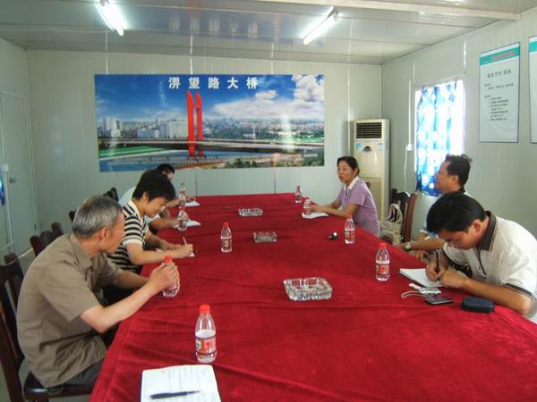 在項(xiàng)目部會(huì)議室,李主席等領(lǐng)導(dǎo)仔細(xì)聽取項(xiàng)目經(jīng)理江仲明的介紹,不時(shí)關(guān)切地詢問工程相關(guān)情況。工會(huì)主席趙其榮向集團(tuán)工會(huì)李主席等一行在高溫天氣下來公司淠望路大橋項(xiàng)目部慰問表示感謝。