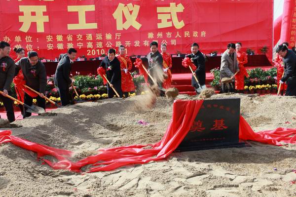 12111118分,隨著歡樂的禮炮聲響起,寧洛高速公路延伸線項目開工儀式在鳳陽縣隆重舉行。安徽省副省長黃海嵩、省交通運輸廳廳長梅勁、滁州市委書記韓先聰、安徽滁寧高速公路開發(fā)有限公司相關負責人、公司總經(jīng)理汪衛(wèi)東、副總經(jīng)理盛明宏、總經(jīng)理助理付月斌等以及各界新聞媒體參加了開工典禮。