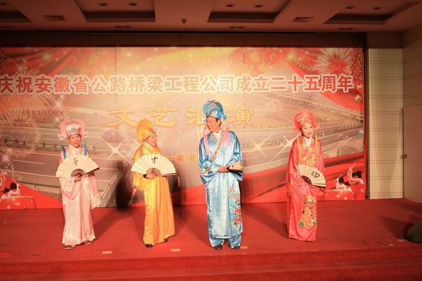 由環(huán)通公司表演的鼓樂(lè)《榮耀之光》將匯演氣氛充分展開(kāi),在激昂的鼓聲中全體員工看到了過(guò)去的榮耀,同時(shí)也看到了未來(lái)安徽路橋的榮耀之光。隨后的路面公司男聲獨(dú)唱《想家的時(shí)候》表達(dá)了路橋人舍小家為大家的“路橋情”。現(xiàn)代舞《nobody》將歡快的舞曲、嫵媚動(dòng)感的舞蹈結(jié)合在一起,展示出路橋青年人可愛(ài)的一面。四分公司表演的三句半·路橋雜談——《四大才子》,不時(shí)讓觀眾捧腹大笑。男聲組合唱《80、90的歌》用美妙的歌聲征服了觀眾。詩(shī)朗誦《安徽路橋人之歌》結(jié)合湖北宜巴項(xiàng)目抗洪救災(zāi)的事跡,歌頌了路橋人勤奮苦干的風(fēng)采。公司機(jī)關(guān)的美麗姑娘攜手獻(xiàn)上了神秘充滿愛(ài)的《印度舞》,將觀眾帶入美妙高雅的民族舞蹈藝術(shù)殿堂,體現(xiàn)高尚的藝術(shù)品位和追求。橋梁公司年輕人表演了小品《路橋人的節(jié)目》,展示了路橋員工如何開(kāi)動(dòng)腦筋,為文藝匯演獻(xiàn)上最好的節(jié)目……