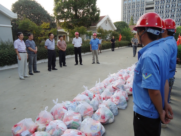 下午5時(shí),寧世明副區(qū)長一行來到懷寧北路1標(biāo)施工現(xiàn)場(chǎng),向冒著酷暑辛勤工作的廣大一線員工表示親切慰問。寧副區(qū)長關(guān)切的詢問員工們的生活情況及高溫天氣下的作業(yè)時(shí)間安排,并親手送上綠豆、白糖、純凈水、毛巾、風(fēng)油精等防暑降溫物品。寧副區(qū)長要求有關(guān)部門全力做好高溫季節(jié)各項(xiàng)工作,并叮囑工程負(fù)責(zé)人,無論工期多緊,也要做好安全生產(chǎn)工作,夏天氣溫高,要合理安排施工時(shí)間,在保證工程質(zhì)量、進(jìn)度的同時(shí),確保工人們勞逸結(jié)合,身體健康。