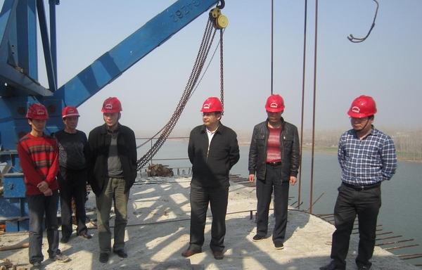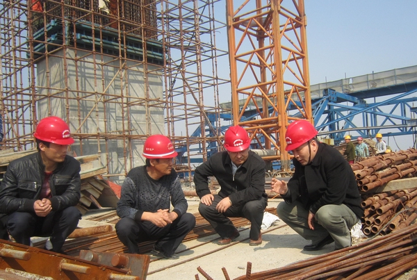 汪總一行深入施工現(xiàn)場,實(shí)地查看當(dāng)前的施工進(jìn)展情況。在主橋施工現(xiàn)場,汪總仔細(xì)詢問了關(guān)鍵性節(jié)點(diǎn)工程的施工計劃,現(xiàn)場探討了質(zhì)量、安全管理等問題,并對項目施工可能遇到的難題進(jìn)行了溝通。