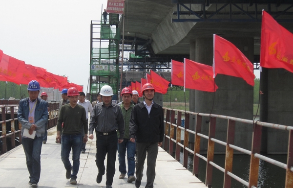 何局長(zhǎng)一行聽(tīng)取了公司總經(jīng)理助理傅月斌同志關(guān)于當(dāng)前施工總體情況的匯報(bào),并深入到主橋施工現(xiàn)場(chǎng),詳細(xì)詢問(wèn)和查看了工程標(biāo)準(zhǔn)化建設(shè)和質(zhì)量安全情況,對(duì)該項(xiàng)目總體建設(shè)情況給予了肯定。