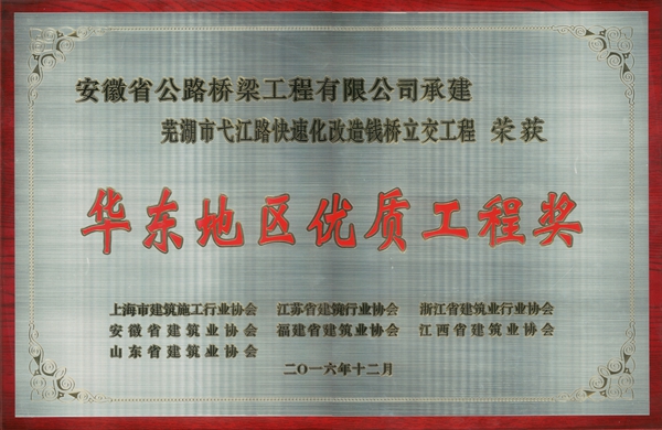 近日,由公司承建的G206公路(南崗-上派段)改建工程4標、蕪湖市弋江路快速化改造錢橋立交工程喜獲2016年度“華東地區(qū)優(yōu)質工程獎”。