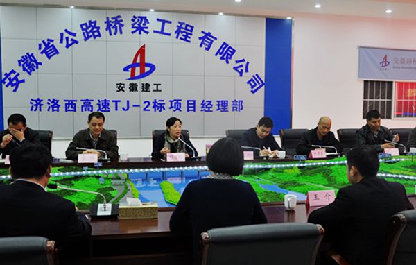 在該項目多媒體會議室,項目負責人對綜合管理情況進行了匯報交流。邢應梅對公司提供的交流機會表示了由衷感謝,并表示黃河特大橋項目確實是樣板工程,這次觀摩收獲很大,希望以后能進一步深入交流。