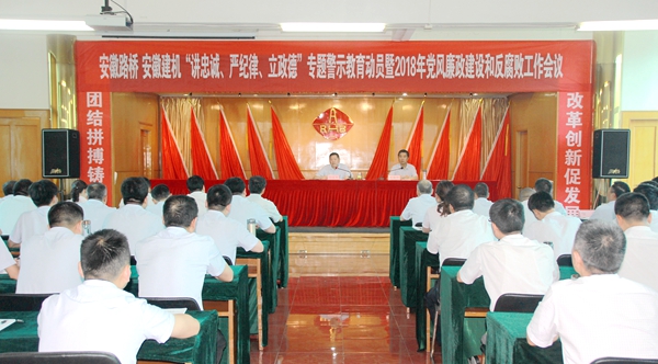 6月13日,公司在七樓會議室召開“講忠誠、嚴(yán)紀(jì)律、立政德”專題警示教育動員暨2018年度黨風(fēng)廉政建設(shè)和反腐敗工作會議。公司領(lǐng)導(dǎo)班子成員、中層干部和安徽建機(jī)中層以上干部參加會議,公司黨委書記、董事長、總經(jīng)理孫學(xué)軍出席會議并作動員講話,會議由公司黨委委員、紀(jì)委書記林緒坤主持,
