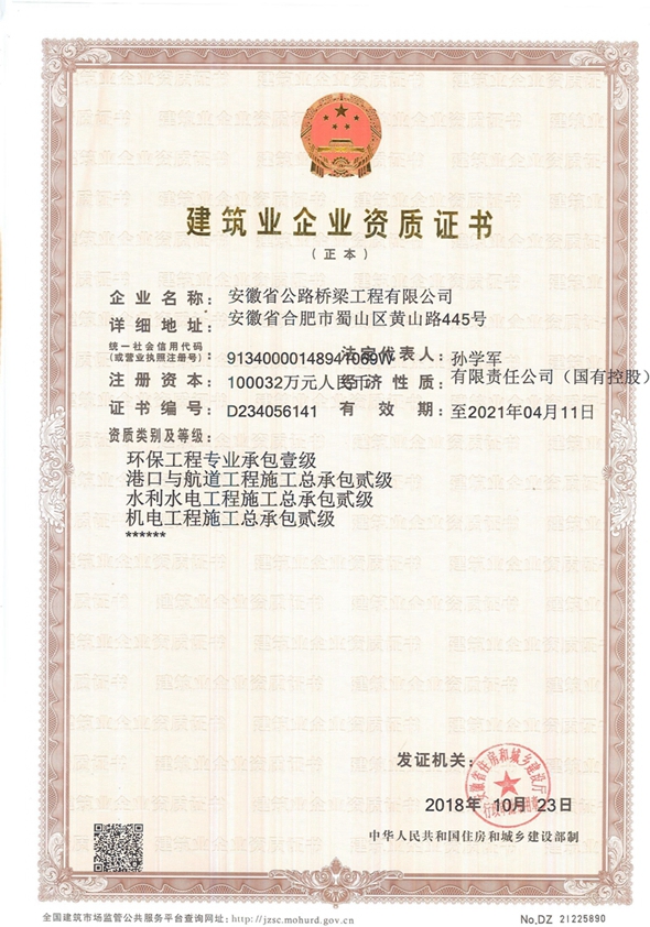 10月23日,公司環(huán)保工程專業(yè)承包壹級、水利水電工程施工總承包貳級、機電工程施工總承包貳級三項資質(zhì)順利通過安徽省住房和城鄉(xiāng)建設(shè)廳審查核準(zhǔn)。三項新資質(zhì)的取得為公司進(jìn)一步拓展非公路施工業(yè)務(wù),實現(xiàn)經(jīng)營業(yè)務(wù)多領(lǐng)域發(fā)展打下了基礎(chǔ)。