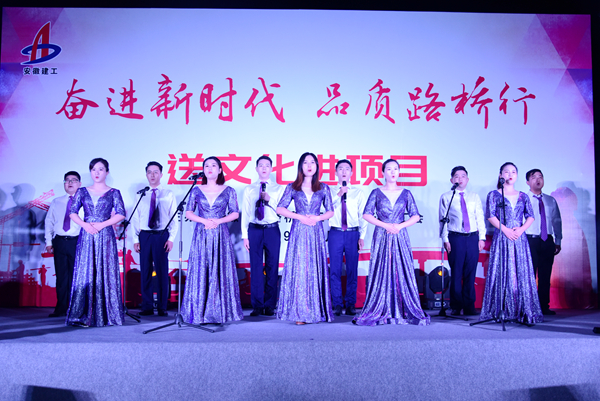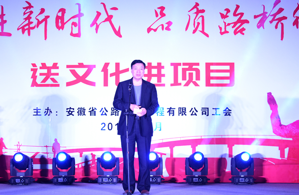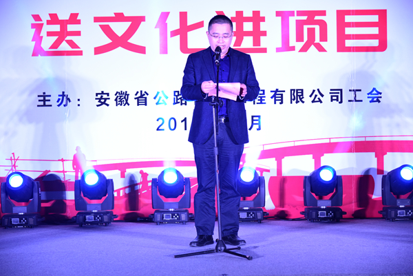 11月6日晚,安徽路橋“奮進新時代 品質(zhì)路橋行” 送文化進項目首場演出在合肥北二環(huán)項目部精彩上演。安徽省建設建材工會主任程德旺、副主任葉雪清、副調(diào)研員邱亮、安徽建工集團調(diào)研專員吳曉伍、公司總經(jīng)理錢申春等領導與合肥片區(qū)各項目員工、農(nóng)民工工友、周邊社區(qū)居民近400人觀看了演出。