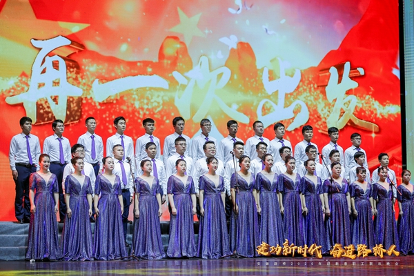 聯(lián)歡會在開場舞《家》中拉開序幕,人屏互動表演《祖國新時代 路橋新征程》全面回顧了公司成立35年來取得的驕人成績;古典舞《采薇》表現了公司“家文化”品牌豐富內涵;語言類節(jié)目《談判專家》、《歡聲笑語》展現了青年職工積極向上的精神風貌;朗誦《跨越》抒發(fā)了一代代路橋人揮灑汗水、逐夢未來的豪邁和勇氣;戲曲聯(lián)唱《十八相送 梨花頌 夫妻觀燈》體現對民族傳統(tǒng)文化的傳承;歌曲《紅旗飄飄》唱出了全體職工對祖國的無限熱愛和不斷奮進的信心與決心。在文工團大合唱《再一次出發(fā)》《我和我的祖國》中,聯(lián)歡會落下帷幕。