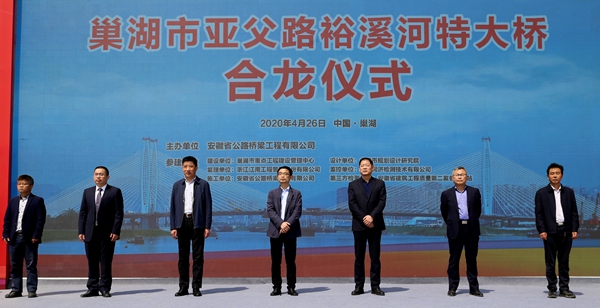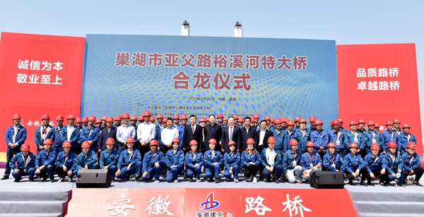 4月26日,由公司承建的皖中新地標(biāo)巢湖亞父路裕溪河特大橋經(jīng)過2年多的建設(shè)順利合龍。巢湖市副市長張明權(quán)參加合龍儀式并宣布大橋正式合龍,股份公司黨委副書記、副總經(jīng)理孫學(xué)軍,巢湖市重點(diǎn)工程建設(shè)管理中心主任曾瑾、居巢經(jīng)濟(jì)開發(fā)區(qū)管委會(huì)主任王慶林、巢湖市地方海事處處長 沐小平、合肥市規(guī)劃設(shè)計(jì)研究院院長黃從俊,公司領(lǐng)導(dǎo)錢申春、任杰、杜海峰出席合龍儀式。