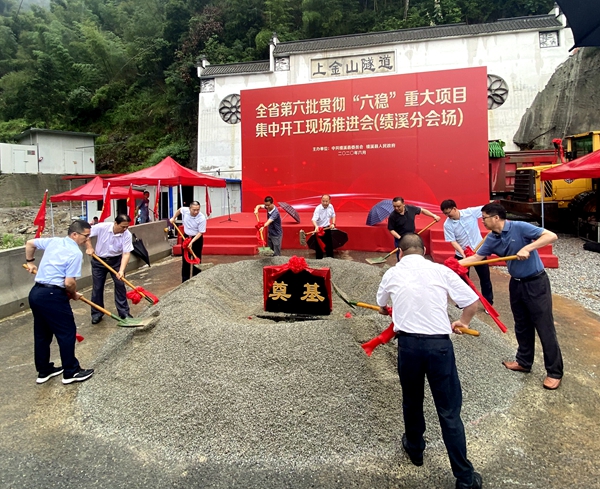 6月19日,安徽省第六批貫徹“六穩(wěn)”重大項(xiàng)目集中開工現(xiàn)場推進(jìn)會(績溪分會場)在公司承建的S456績溪至譚家橋公路上金山隧道項(xiàng)目舉行,該項(xiàng)目開工儀式也同期舉辦??兿h委書記黃德泉現(xiàn)場宣布全縣第六批貫徹“六穩(wěn)”重大項(xiàng)目集中開工??h委常委、常務(wù)副縣長胡旭華發(fā)表講話,公司黨委副書記、總經(jīng)理錢申春應(yīng)邀出席并致辭??h政府副縣長、縣經(jīng)開區(qū)管委會主任劉林發(fā)主持儀式。