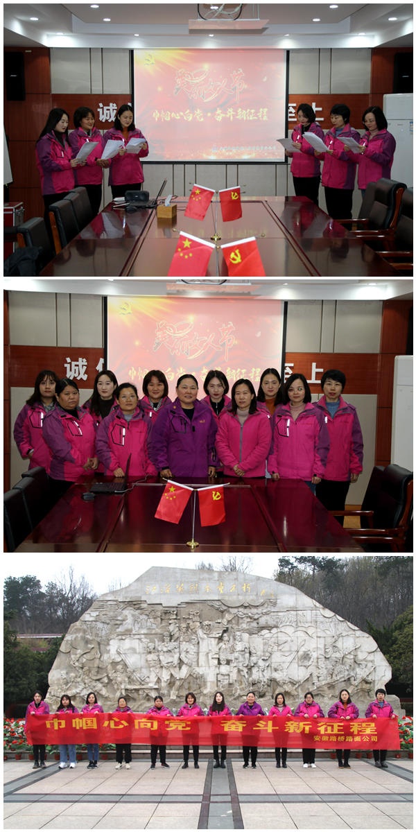 路面公司組織全體女職工開展以“巾幗心向黨 奮斗新征程”為主題的系列活動(dòng)?!白x經(jīng)典、歌頌黨”朗誦活動(dòng),贊美了中國共產(chǎn)黨百年來走過的光輝歷程,表達(dá)對(duì)祖國深沉的熱愛之情。隨后,開展了“緬懷先烈、激揚(yáng)斗志”的緬懷先烈活動(dòng),集體參觀了大蜀山烈士陵園,深切緬懷革命先烈的豐功偉績(jī)。